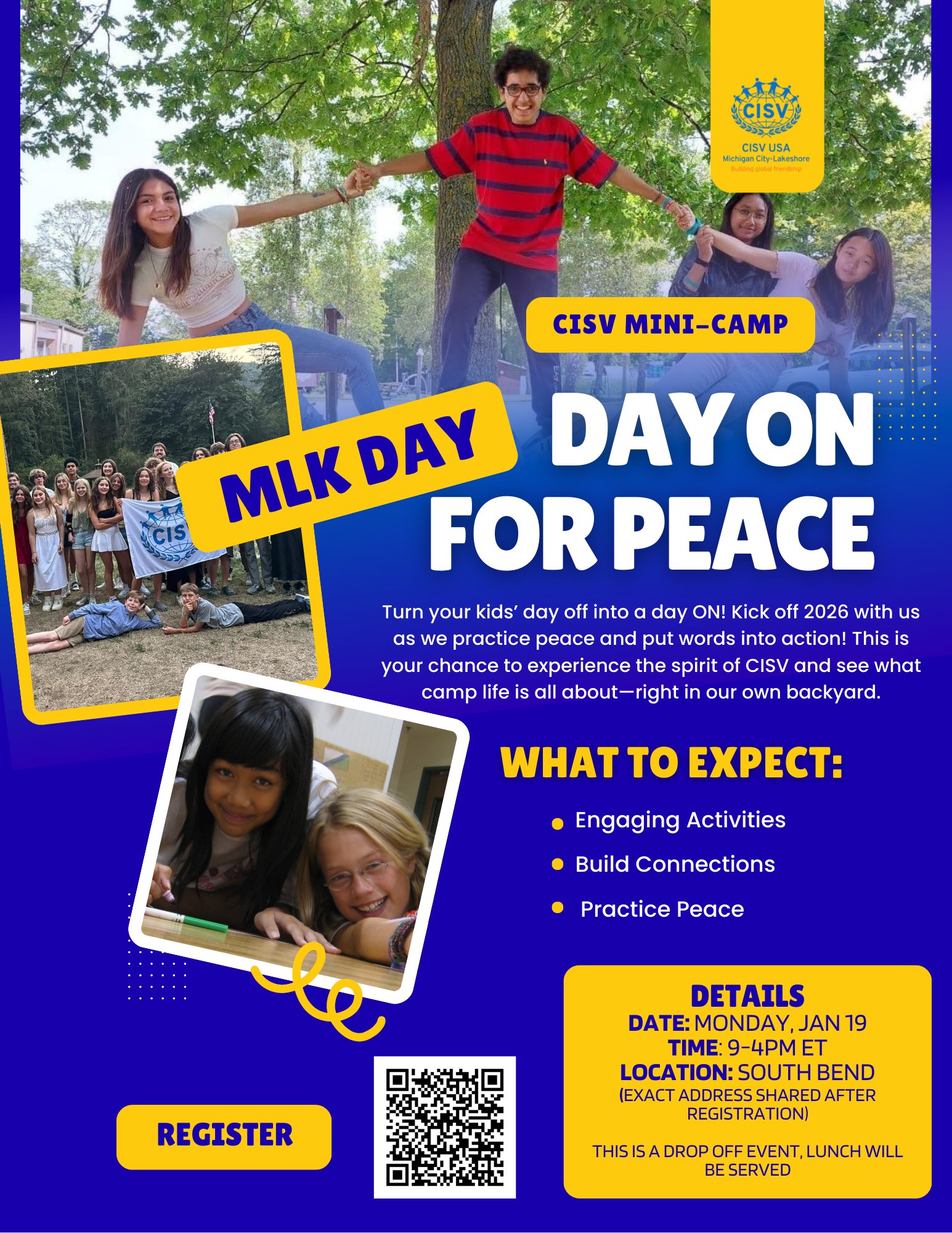 Turn Your Kids' Day Off Into a Day ON for Peace! Join us for a one day mini camp right here Northwest Indiana! On MLK Day, Monday, January 19, youth…
